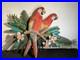 2 Red Parrots Hand Carved In Hibiscus Tree Wood & Metal 40 X 30 X 4 Rare
