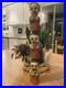 Vintage Carved Wood Panel Indigenous Tomahawk Palm Tree Brown Tropical Ladder